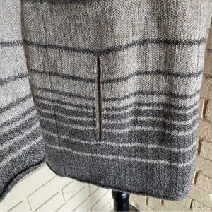 Wrap yourself in the epitome of cozy sophistication with the Vince Sophie Striped Blanket Cardigan. This sweater is a blend of luxury materials such as alpaca, yak, and cashmere, ensuring a soft and plush feel. It features a classic striped pattern in a tasteful gray tone, complemented by a relaxed fit that promises all-day comfort.