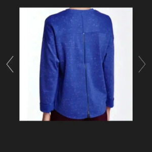 Vince Speckled Zip Back Blue Pullover Sweatshirt Silk Blend