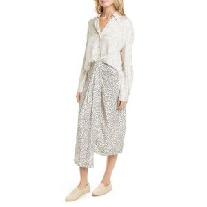 Vince. Star Dot Drape Skirt. Midi length slip skirt. White with black print. Gathered detailed at the waist on the front. Zipper in the back. Silk blend. Like new condition. Size 8