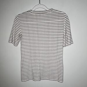Vince Stripe Elbow Sleeve Ribbed Cotton T-Shirt Size Small
