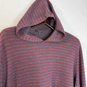 Vince Stripe Long Sleeve Slubbed Hooded Cotton T-Shirt Sz XXL Burgundy Striped