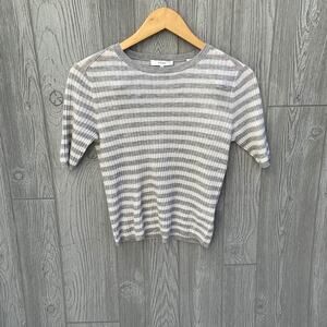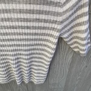 Vince Stripe Rib Cashmere Sweater GREY/OFF WHITE