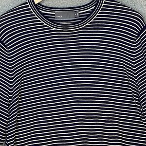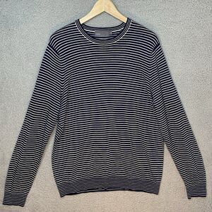 Vince Striped Cotton Cashmere Crewneck Sweater Navy White Mens Size M