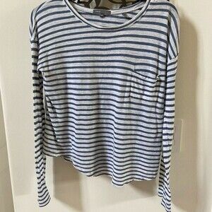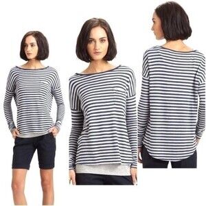 Vince Striped Drop-Sleeve Pocket Tee XS