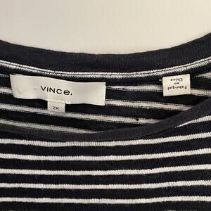 Vince. Striped Linen Tee Womens Size 2X Navy Short Sleeve Crew Neck Top *FLAW