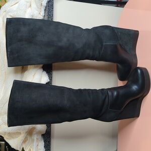 Vince Suede Nubuck Wedge Knee High Mob Wife Boots Made in Italy Black 9 US 40 EU