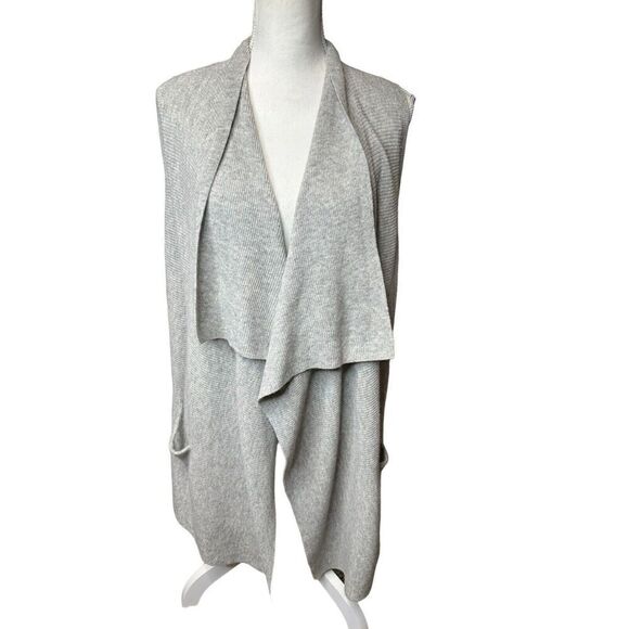 Vince Sweater Vest Women’s Heather Gray 100% Cashmere Wool Long Open Front Sz M