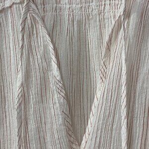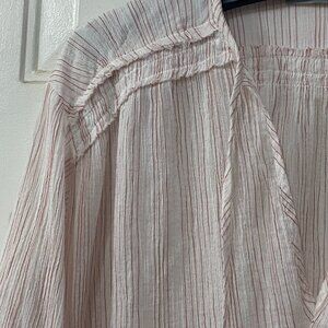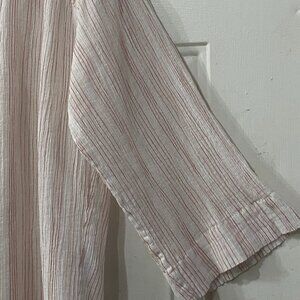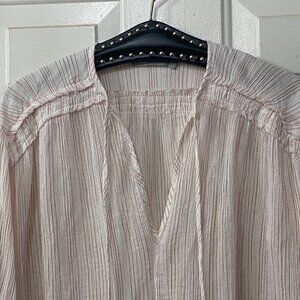 Vince Sz S Oversize Blouse Tie Neck 3/4 Sleeve White/Pink Striped Crinkle