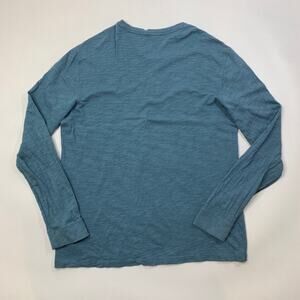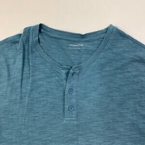 Vince T Shirt Mens L Large Faded Blue Henley Cotton Cuffed Long Sleeve Tee