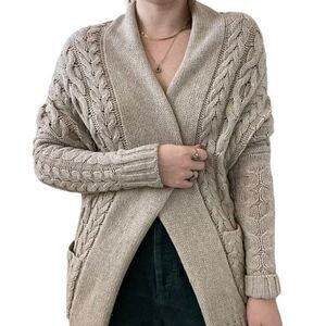 Vince Tan Beige Wool Yak Blend Cable Knit Oversized Shawl Cardigan Sz XS