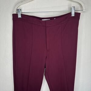 Vince Tapered Stove Pipe Pintuck Seamed Burgundy Ponte Knit Pants Trousers 10