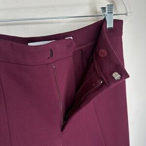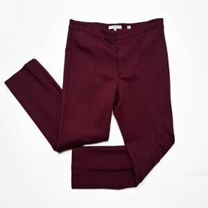 Vince Maroon Black Cherry Burgundy Wine Ponte Knit Classic Straight Leg Cropped Ankle Trouser Dress Pants