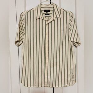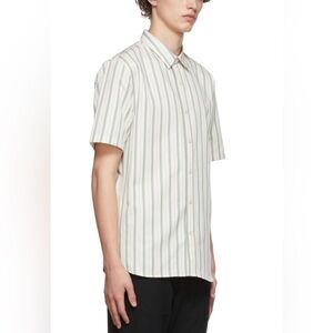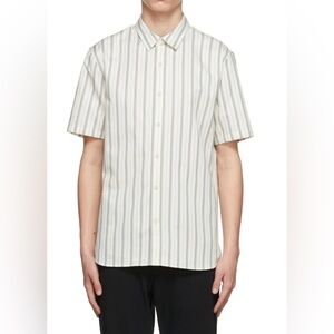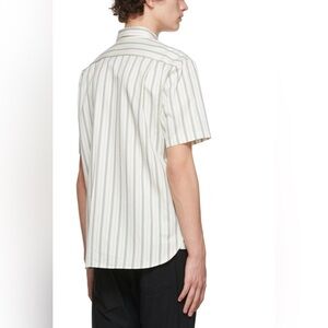 TENCEL and organic cotton-blend shirt. Striped pattern throughout. • Spread collar • Button closure Supplier color: Natural Lyocell, 47% organic cotton.