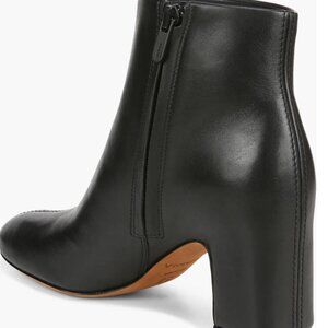 Worn once. Full leather ankle boots. Stylish seam down front center with 3in leather covered heel. Size 6.5M Women's. Narrow ankle and inner zip.