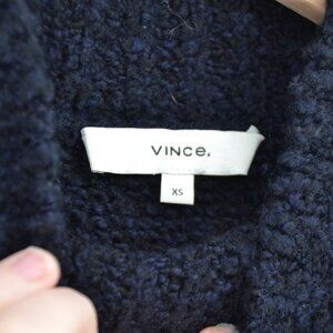 Vince Textured Saddle Sleeve Turtleneck Sweater in Blue and Black. Size XS. Preowned condition. Please refer to photos for any signs of wear.