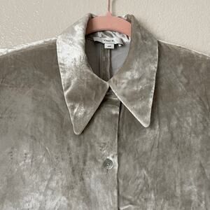 Gray Velvet Silk Button Up Front Shirt Top Vince Medium
