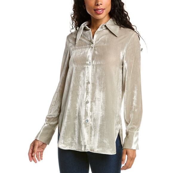 Gray Velvet Silk Button Up Front Shirt Top Vince Medium