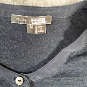 Vince Top Womens Medium Silk Long Sleeve Half Button Crew Neck Blue