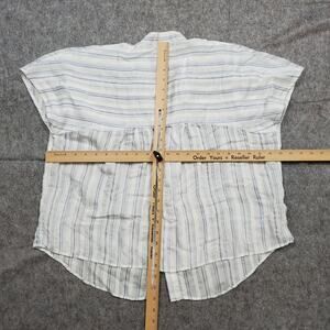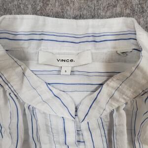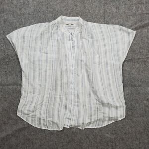 Vince Top Womens Small Short Sleeve Drapey Stripe Shirred Blouse Button Front