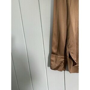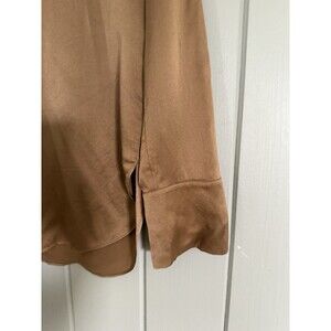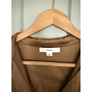 Vince Top XS Long Sleeve Stand Collar Blouse 100% Silk Satin Light Nile Bronze