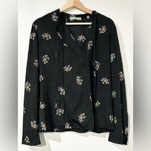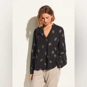 Vince Tossed Bouquet Tie-Neck Blouse Black S