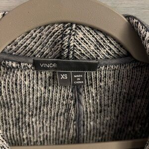 Vince Tweed Open Front Heather Knit Blue Blazer Chambray Trim Career