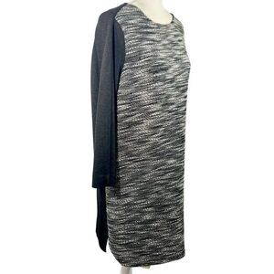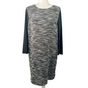 Vince Tweed Wool Blend Black Gray Textured Shift Dress Size Large