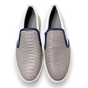 Vince Two-Tone Ivory Gray Banler Crocodile Snake Skin Slip Ons Women’s Size 6.5M