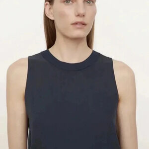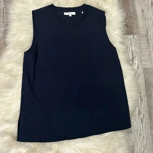 Vince. Unfold Rib Trim Crew Neck Shell in Coastal Blue sz small