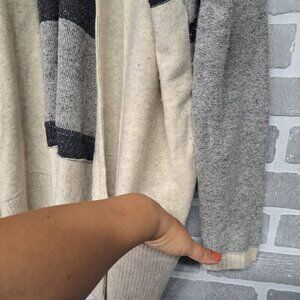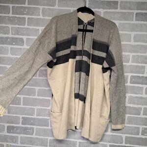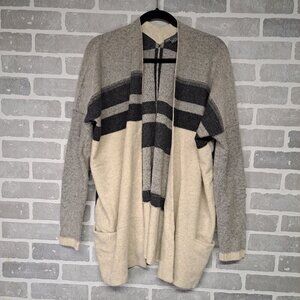 Vince Variagated Stripe Oversized Cardigan Sweater Wool and Cashmere Black/Gray Medium