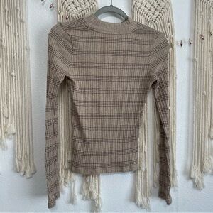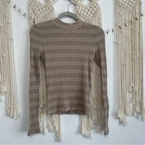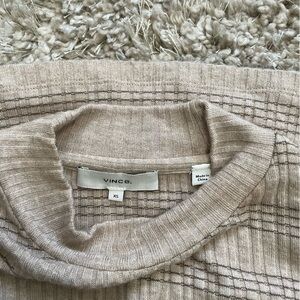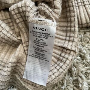 Vince Variegated Rib Striped Mock Neck Sweater Sz.XS Wheat/Dark Almond