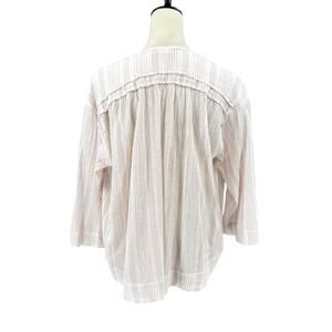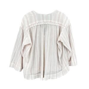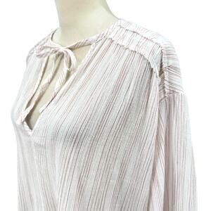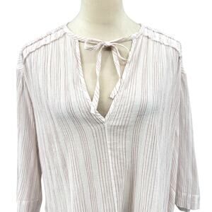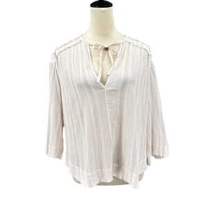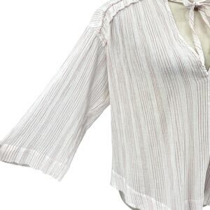Vince Variegated Stripe Crinkle Breathable Cotton Tassel V-neck Wide Sleeve Top
