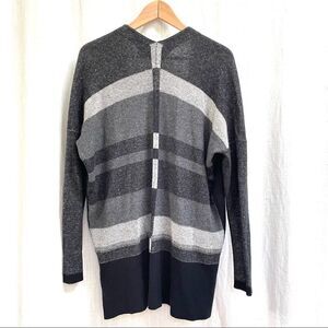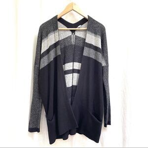Vince Variegated Stripe Oversized Cardigan Top Wool/Cashmere Black/Gray small