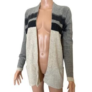 Vince Variegated Wool & Cashmere sweater Cardigan SZ SM striped open front POCKETS