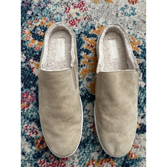 Vince Verrell Backless Shearling Lined Sneakers Taupe Suede Leather Size 9.5M