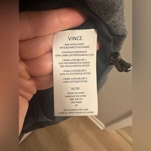 Vince Vest Zip Grey Quilted Puffer Lamb Leather & Wool Medium (M)