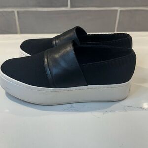 Vince Ward Shoes Black Knit Leather Platform Slip On Sneakers Loafer