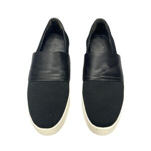 Vince Ward Slip On Sneaker Women's 7.5M Black Knit Top Leather Band Round Toe.
