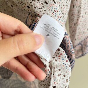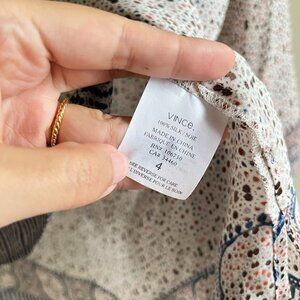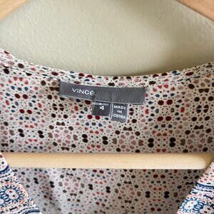 Vince White Blue Pink Collarless Pullover V-Neck 100% Silk Top Blouse Size 4