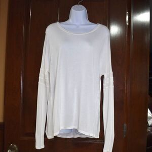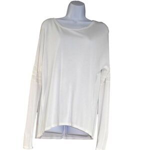 Vince White Long Sleeve Blouse Size Small Scoop Neck Mesh Detail Lightweight Top
