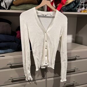 Stylish white ribbed top with button-up front. Perfect for layering.