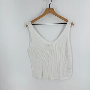 Vince. White Ribbed Knit Sleeveless Cotton Tank Top Minimalist Style Size L