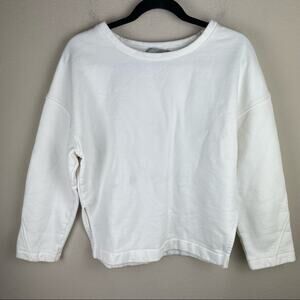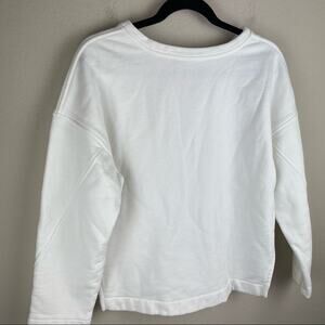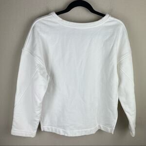 Vince, white sweatshirt, oversized sweater, minimalist, basic pullover, luxury loungewear, cotton blend, soft sweater, capsule wardrobe, split hem sweater