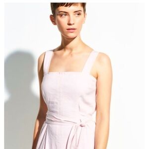 Vince Wide Strap Belted Linen Blend in Rosa Seco Tank Midi Dress