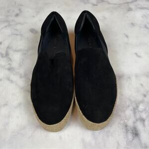black suede Wilden Flatform Espadrilles from Vince. leather upper and lining with contrast white rubber sole. EUC - worn only 2-3 times with just a couple faint scuffs on upper / heel.
