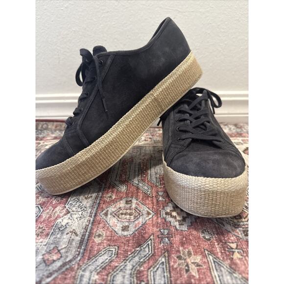 Vince Windell Platform Sneaker Espadrilles Lace Up Navy Blue Suede Mismatch 10M