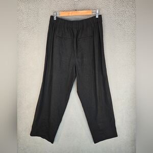 Vince Womems Linen Blend Pants Sz L Black Straight Wide Leg Elastic Back Waist