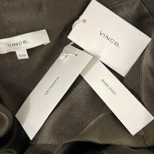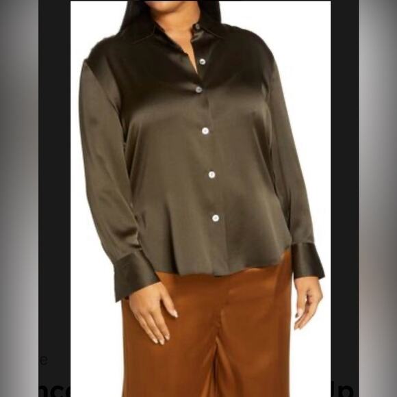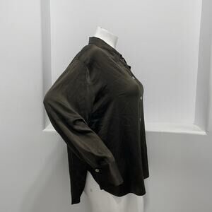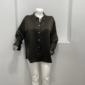 Vince Women Button Up Silk Shirt Top Olive Green Size XXXL NWT