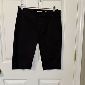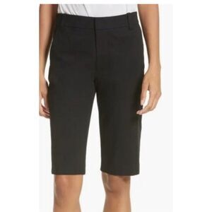 Keywords: Vince, Bermuda shorts, women's fashion, size 2, black shorts, casual wear, mid-rise, stretch fabric, preppy style, golf shorts, new with tags, solid pattern, coin pocket, cotton blend.