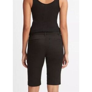 Keywords: Vince, Bermuda shorts, women's fashion, size 2, black shorts, casual wear, mid-rise, stretch fabric, preppy style, golf shorts, new with tags, solid pattern, coin pocket, cotton blend.